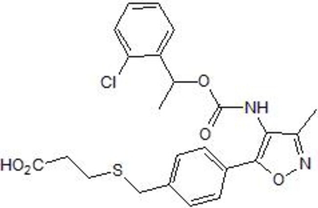 | Chemical Name or Material | 3-[[[4-[4-[[[1-(2-Chlorophenyl)ethoxy]carbonyl]amino]-3-methyl-5-isoxazolyl]phenyl]methyl]thio]propanoic acid |