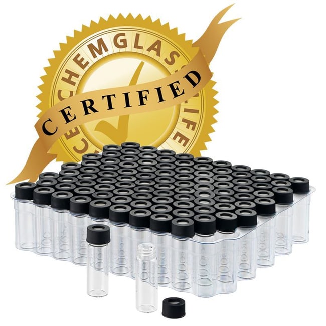 Chemglass Life Sciences Certified Kit, Preassembled, Clear with Spot, 2.0mL 12x32mm 9mm Thread Large Opening Vial and 0.040" PTFE/Silicone Septa with Slit Lined Bonded Cap