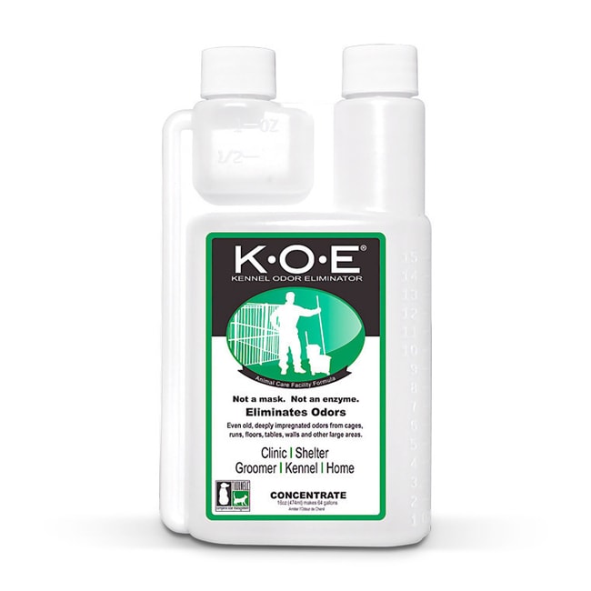 Eliminates, does not mask, even old, impregnated odors from cages, runs, walls and other large areas. No added labor, just add it to cleaner, rinse or spray. Unlike most enzyme products, KOE is compatible with cleaners and germicides. You need to use only 1/4 oz. (not 1oz.) per gallon of water. Leaves a mild, fresh scent. Unpleasant animal-related odors are a common, daily occurrence, and managing them safely and effectively is an important part of keeping your work environment pleasant, your clients satisfied, and pets happy. Thornell specializes in creating products that permanently eliminate malodors - complex blends that work through counteraction, absorption, molecular bonding, inhibitors and residual actions.