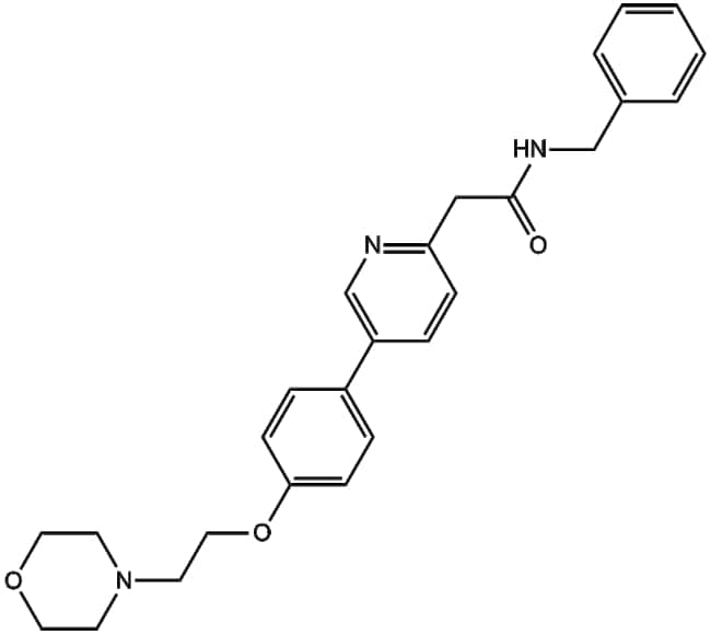 KX2-391 (CAS 897016-82-9) is a highly selective non-ATP competitive inhibitor of Src kinase targeting the substrate-binding site rather than the ATP-binding domain With an IC50 of 20 nM against Src KX2-391 suppresses Src-catalyzed phosphorylation of FAK Shc and paxillin as well as Src autophosphorylation without impacting kinases such as PDGFR EGFR JAK1 JAK2 or Lck Additionally KX2-391 inhibits tubulin polymerization by binding to specific sites on the tubulin heterodimer Cellular assays demonstrate growth inhibition in NIH3T3/c-Src527F and SYF/c-Src527F cell lines with GI50 values of 23 nM and 39 nM respectively KX2-391 is utilized in research involving Src-related oncogenic signaling and tumor metastasis
