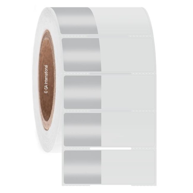 GA International Wrap-Around Cryogenic Thermal-Transfer Labels 1.125" x 1" + 1.595" (wrap) / 28.6mm x 25.4mm + 40.5mm (wrap) Rectangle Silver + Transparent From -196°C to +100°C (-321°F to +212°F)