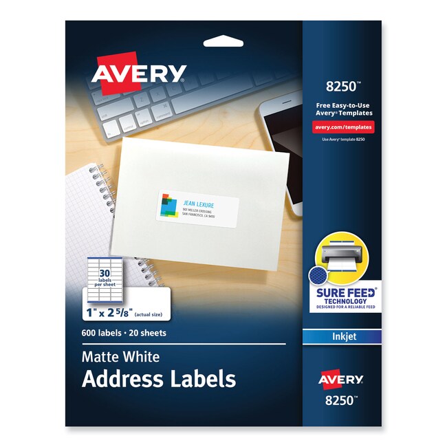 Labels can be printed with vivid color and sharp text and are ideal for special mailings messages invitations and announcements Easy to customize with free templates and designs using Avery Design and Print 8 5x11 sheets for color laser and inkjet printers Inkjet Labels with Sure Feed Designed for a reliable printer feed Shape- Rectangular Label Size - text- 1x2 63 Label Color(s)- Matte White Color Family- White