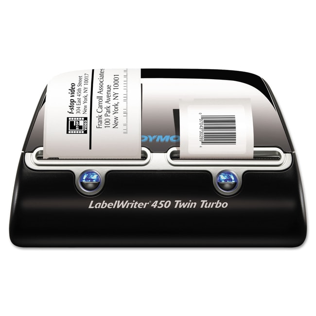 The most efficient solution for your professional labeling filing and mailing needs the LabelWriter 450 saves you time and money at the office Connect a LabelWriter 450 to your PC or Mac and you re ready to print labels directly from Microsoft Word or Outlook QuickBooks CardScan Mac Address Book and other popular programs Print impressive address file folder labels name badges and more without the extra work and hassle of printing sheet labels on a standard desktop printer Thermal printing technology eliminates the cost of ink or toner and the printer s compact design makes it an easy and attractive addition to any modern workspace Compatible with Windows 7 or later and Mac OSxv10 8 or later LabelWriter 450 Twin Turbo-Holds two label rolls at once to maximize efficiency Label Maker Type- Printer Prints Barcodes- Yes Prints Postage- Yes Power Source(s)- AC Adapter (Included)