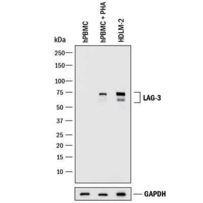 LAG-3 Monoclonal antibody specifically detects LAG-3 in Human samples. It is validated for Western Blot, Flow Cytometry, ImmunohistochemistrySpecifications