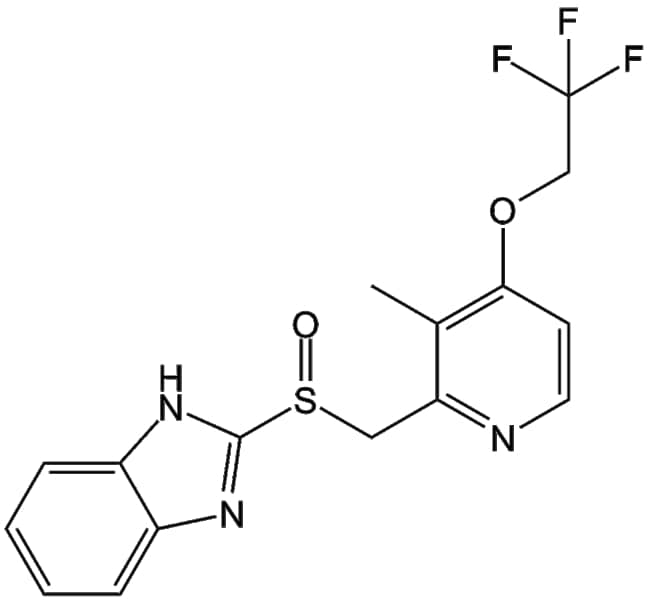 Lansoprazole (103577-45-3) is a small-molecule inhibitor targeting gastric H K -ATPase an enzyme responsible for gastric acid secretion via proton pump activity It is designed to inhibit H K -ATPase activity thereby suppressing gastric acid production Lansoprazole exerts its biological activity primarily through selective inhibition of the H K -ATPase enzyme In experimental models lansoprazole demonstrates inhibitory activity with an IC50 value of approximately 6 3 M for enzyme activity and 0 09 M for suppression of histamine-stimulated gastric acid secretion Based on these pharmacological properties lansoprazole holds research potential in studies of gastric acid-related pathophysiology gastroprotective mechanisms and ulcer formation processes