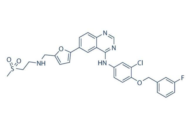 Lapatinib (GSK572016), used in the form of Lapatinib Ditosylate, is a potent EGFR and ErbB2 inhibitor with IC50 of 10.8 and 9.2 nM in cell-free assays, respectively. Lapatinib induces ferroptosis and autophagic cell death. *For Research & Development use only. Product is not intended for drug, household, or human consumption.
