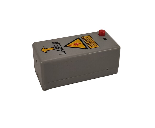 This refraction effect creates an easily visible line instead of a laser point. The line can be projected to a distance of over a meter. When this line is used with mirrors or lenses, the reflection and refraction paths are easy to see. For safety, the laser only stays on when the button is pressed. Device measures 2.75 x 1.25 x 1.25 in.
