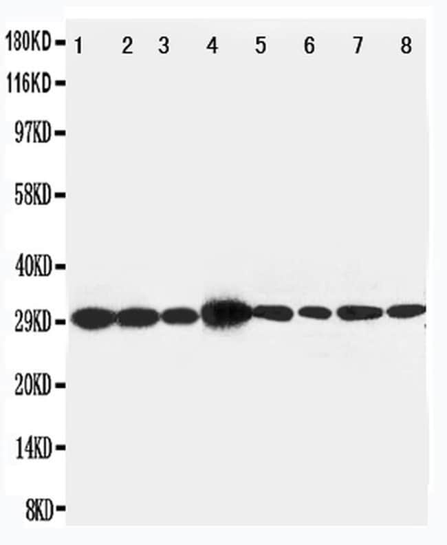 Reconstitute with 0.2 mL of distilled water to yield a concentration of 500 μg/mL. Positive Control - WB: Rat Liver Tissue, Rat Spleen Tissue, Rat Intestine Tissue, JURKAT Cell, MCF-7 Cell, A431 Cell, HELA Cell, 293T Cell. IHC: Human Lung Cancer Tissue. ICC/IF: A549 Cell.