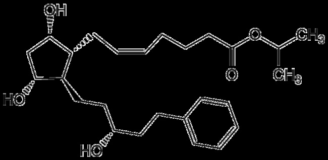 Chemical. CAS: 130209-82-4. Formula: C26H40O5. MW: 432.59. Latanoprost is the isopropyl ester of 17-phenyl-13,14-dihydro prostaglandin F2alpha (17-phenyl-13,14-dihydro PGF2alpha). It is a prodrug form of the free acid, which is a potent agonist of the FP prostaglandin receptor in the eye. Latanoprost reduces intraocular pressure in glaucoma patients with few side effects.