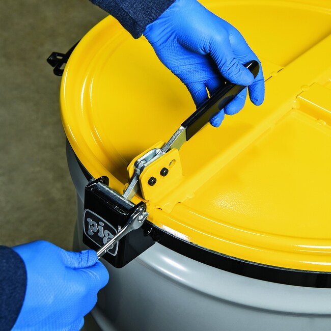 - Nitrile gasket and locking mechanism seal lid to help reduce vapor emissions and keep drum contents dry and secure