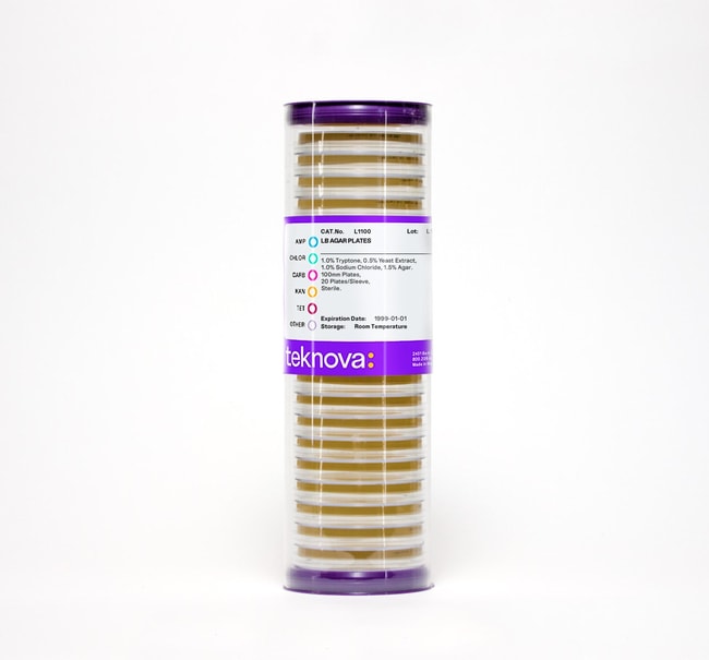 Teknova LB Agar Plates. 100mm Plates, 20 Plates per Sleeve, Sterile.