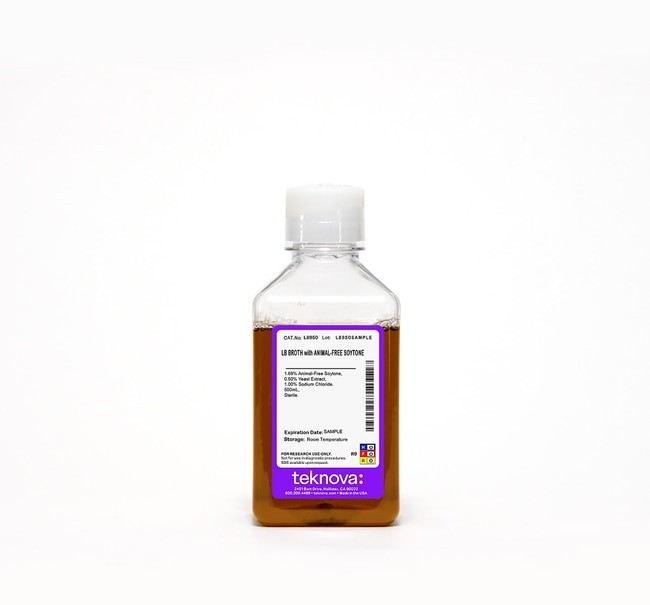 Teknova LB Broth with Animal-Free Soytone. 500mL, Sterile.