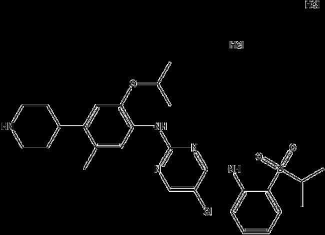 LDK378 dihydrochloride (CAS 1380575-43-8) is a potent inhibitor of anaplastic lymphoma kinase (ALK) a receptor tyrosine kinase in the insulin receptor superfamily Demonstrating an in vitro IC50 of 200 pM against ALK LDK378 also inhibits IGF-1R InsR and STK22D with IC50 values of 8 nM 7 nM and 23 nM respectively In cellular assays LDK378 suppresses proliferation of Ba/F3 cells expressing NPM-ALK and Karpas-299 human non-Hodgkin lymphoma cells with IC50 values of 22 8 nM and 26 nM This compound serves as a valuable tool for investigating ALK-driven signaling pathways and potential therapeutic strategies in oncology research