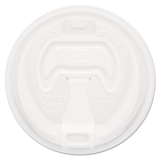 Unique contemporary near-dome design helps you make a great impression with patrons Optima reclosable tab allows heat-retaining lid-on sipping Finger-tip-sized lock-down point simplifies order-filling tasks Secure fit and tab lock minimize the potential for spills Fits- 12 oz to 24 oz Hot Cups Material Type- Plastic Material(s)- Plastic Color(s)- White