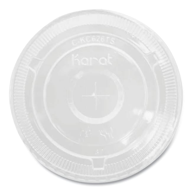 Karat PET lids are durable high clarity and crack resistant They are also recyclable and BPA free Compatible with Karat Cold Cups Flat Lid with Straw Slot Fits- 12 oz to 24 oz Cold Cups Material Type- Plastic Material(s)- PET Color(s)- Clear
