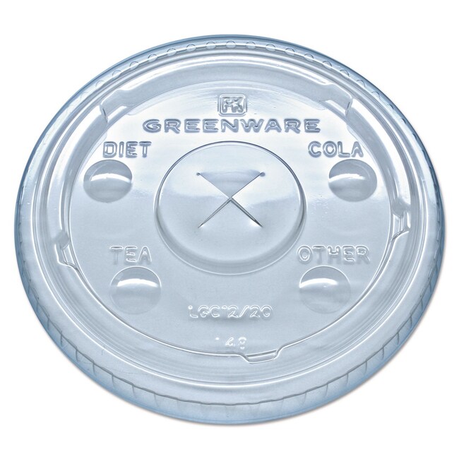 Cold drink lids made from all-natural corn-based material Leak-resistant snap-fit feature Fits- 9 oz Old Fashioned Cups 12 oz Squat Cups 20 oz Cold Cups Material Type- Plastic Material(s)- Plastic Color(s)- Clear