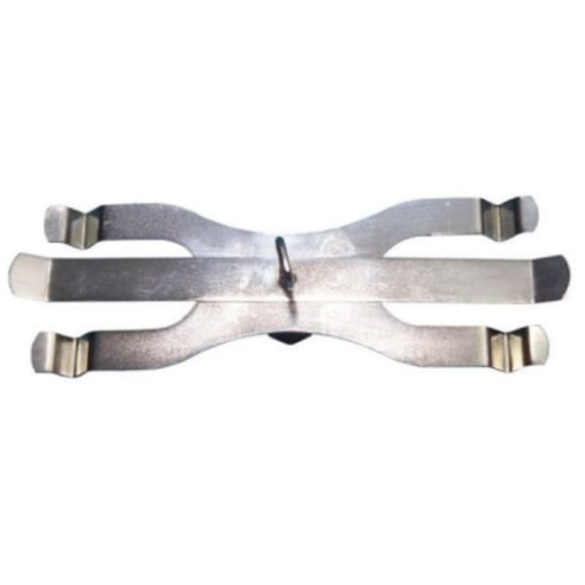 - Zinc-plated stamped steel clamp securely holds two burettes.