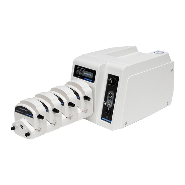 Pumps/ peristaltic pumps/ Longer Pump WT600-2J&4*YZ1515X-ASpecification- Speed: 60rpm-600rpm, CW/CCW- Speed resolution: 1rpm- Speed accuracy: ≤ ±1%- Control mode: Control panel, external signal control and communication control are available- Display: 3-digit LED display for current speed- External control: Start/stop, direction and speed control (4-20mA, 0-5.5V, 1-10V, 1-10kHz external control module optional)- Communication interface: RS485- Power-off memory: Return to previous status when powered on- Prime: For fast filling and emptying at full speed- Dimension (L×W×H): 285 x 207 x 180 (mm)- Power supply: AC 220V±20%/200W or AC 110V±20%/200W- Operating temperature: 0 to 40°C- Relative humidity: <80%- IP rating: IP31- Weight: 5.2kg