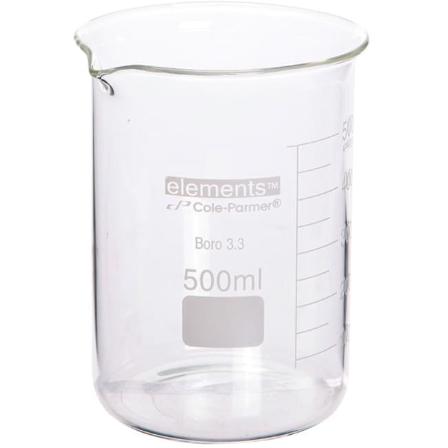 Cole-Parmer Cole-Parmer elements Low-Form Beaker, Glass, 600 mL, 8/pk