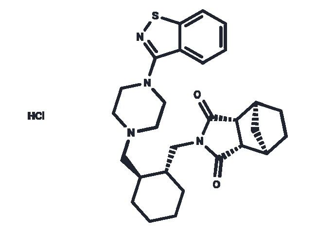 Also available in 5 mg 10 mg 25 mg 50 mg 200 mg 500 mg 1 mL 10 mM (in DMSO) and bulk. Please contact Fisher for quotes. Lurasidone hydrochloride (Lurasidone HCl) is a thiazole derivative and atypical antipsychotic agent that functions as a dopamine D2 receptor antagonist; serotonin 5-HT2 receptor antagonist serotonin 5-HT7 receptor antagonist an antagonist of the adrenergic (alpha)2A and (alpha)2C receptors as well as a partial serotonin 5-HT1A receptor agonist. It is used in the treatment of schizophrenia and bipolar disorder. purity: 99%
