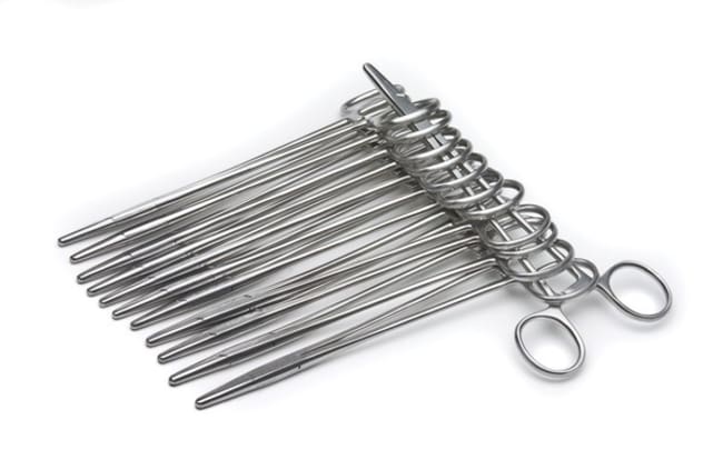 Mayo-Hegar needle holders are surgical instruments designed for holding and driving needles through tissues. Mayo-Hegar needle holders are designed with a scissor-like shape, featuring a long, slender body with finger rings on one end and opposed jaws on the other. The jaws have serrated (cross-hatched) tips to securely grip the needle during suturing. They feature a ratcheted locking mechanism. These needle holders are 15 cm (6”) long, and the tips are straight. These are made of surgical grade stainless steel, suitable for autoclaving and other sterilization methods. This is a package of 12 instruments that are student grade instruments. These are perfect for disposable applications. Mayo-Hegar needle holders are named after the renowned surgeons Charles Horace Mayo and William J. Mayo (of the Mayo Clinic) and Friedrich Trendelenburg and Carl Hans Hegar, all distinguished figures in the field of surgery. These instruments have become a standard tool in the operating room.