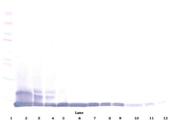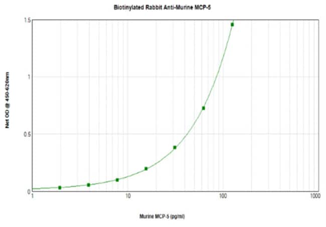 AA Sequence of recombinant protein: GPDAVSTPVT CCYNVVKQKI HVRKLKSYRR ITSSQCPREA VIFRTILDKE ICADPKEKWV KNSINHLDKT SQTFILEPSC LG. Preparation: Produced from sera of rabbits immunized with highly pure Recombinant Murine MCP-5 (CCL12). Anti-Murine MCP-5 (CCL12)-specific antibody was purified by affinity chromatography and then biotinylated. Sandwich ELISA: To detect mMCP-5 by sandwich ELISA (using 100 μL/well antibody solution) a concentration of 0.25-1.0 μg/mL of this antibody is required. This biotinylated polyclonal antibody, in conjunction with PeproTech Polyclonal Anti-Murine MCP-5 (500-P61) as a capture antibody, allows the detection of at least 0.2-0.4 ng/well of Recombinant mMCP-5. Western Blot: To detect mMCP-5 by Western Blot analysis this antibody can be used at a concentration of 0.1-0.2 μg/mL. Used in conjunction with compatible secondary reagents the detection limit for Recombinant mMCP-5 is 1.5-3.0 ng/lane, under either reducing or non-reducing conditions. 500-P61BT-1MG will be provided as 2 x 500 μg