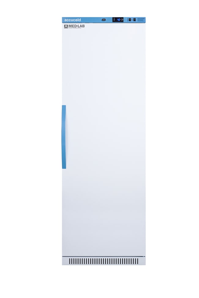 ACCUCOLD ARS15ML Performance Medical-Laboratory Refrigerator 15 Cu. Ft. with Solid Door with Advanced Temperature Control, cycle defrost and forced air cooling. Adjustable operating control range of 2C to 10C with Intelligent Microprocessor Digital Controller designed to provide +/- 1C variation. Multiple Audio and Visual Alarms for Safer Temperature Monitoring. Digital display of the min/max temperature (updated in 15 minute increments). Remote alarm contacts. LED lighting, adjustable shelves, 1/2' probe hole, reversible door. Meets EPA and SNAP requirements. Eco-Friendly using hydrocarbons for a greener global footprint. Compatible with Omnicell, AcuDose, and Pyxis (not included), ADA Option available. 2 Year Warranty Parts and Labor, 5-year compressor: https://www.accucold.com/product/ARS15ML