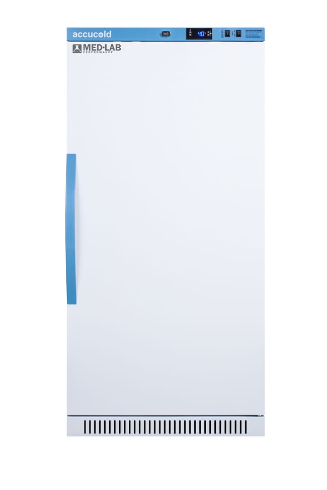 ACCUCOLD ARS8ML Performance Medical-Laboratory Refrigerator 8 Cu. Ft. with Solid Door with Advanced Temperature Control, cycle defrost and forced air cooling. Adjustable operating control range of 2C to 10C with Intelligent Microprocessor Digital Controller designed to provide +/- 1C variation. Multiple Audio and Visual Alarms for Safer Temperature Monitoring. Digital display of the min/max temperature (updated in 15 minute increments). Remote alarm contacts. LED lighting, adjustable shelves, 3/8' probe hole, reversible and self closing door. Meets EPA and SNAP requirements. Eco-Friendly using hydrocarbons for a greener global footprint. Compatible with Omnicell, AcuDose, and Pyxis (not included), ADA Option available. 2 Year Warranty Parts and Labor, 5-year compressor: https://www.accucold.com/product/ARS8ML