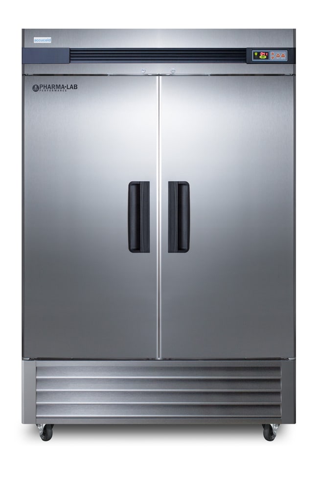 ACCUCOLD ARS49ML Performance Medical-Laboratory Refrigerator 49 Cu. Ft. with 2 Solid Door with Advanced Temperature Control, cycle defrost and forced air cooling. Adjustable operating control range of 2C to 10C with Intelligent Microprocessor Digital Controller designed to provide +/- 1C variation. Multiple Audio and Visual Alarms for Safer Temperature Monitoring. Digital display of the min/max temperature (updated in 15 minute increments). LED lighting, adjustable shelves, self closing door. Meets EPA and SNAP requirements. Eco-Friendly using hydrocarbons for a greener global footprint. 2 Year Warranty Parts and Labor, 5-year compressor: https://www.accucold.com/product/ARS49ML