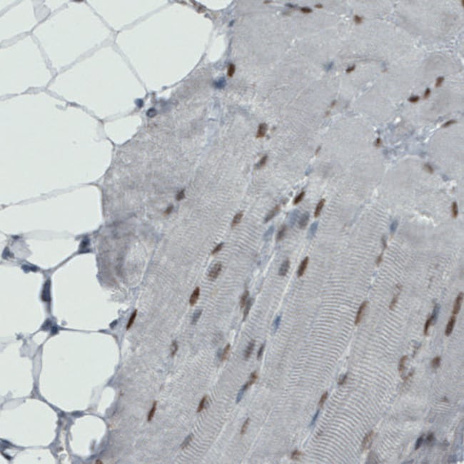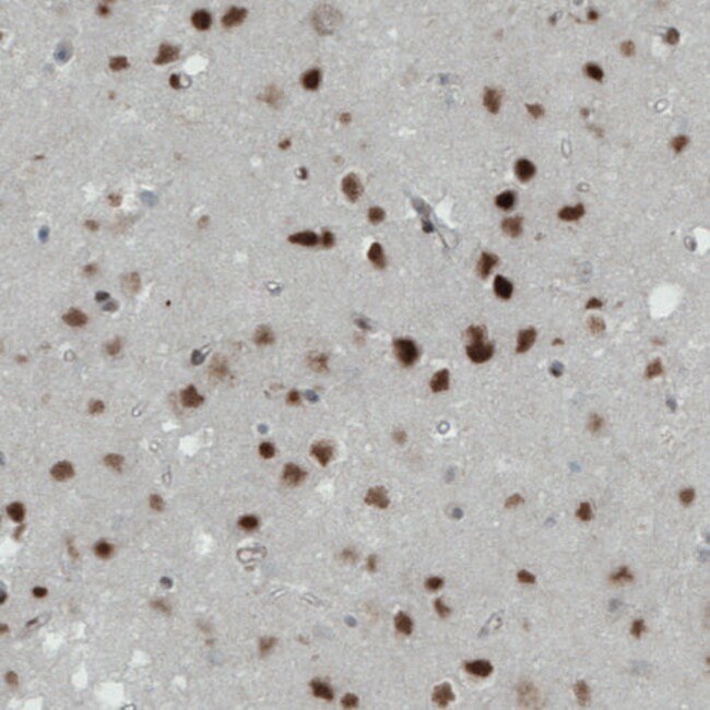 Immunogen sequence: PPNFEMPVSI PVSSHNSLVY SNPVSSLGNP NLLPLAHPSL QRNSMSPGVT HRPPSAGNTG GLMGGDLTSG AGTSAGNGYG NPRNSPGLLV SPGNLNKNMQ AKSPPPMNLG MNNRKPDLRV LIPPGSKNTM PSVNQRINN Highest antigen sequence indentity to the following orthologs: Rat - 47%, Mouse - 97%.
