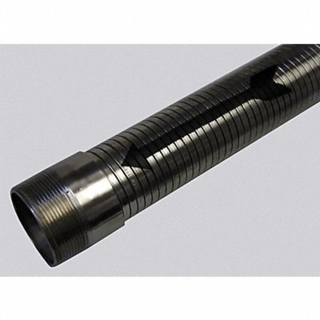 The Hose Master Interlocked Metal Hose is a 3 inch diameter metal hose with a working pressure of 300 PSI. It has interlocking annular corrugations and is made from 304 stainless steel with a smooth bore. The hose has a temperature range of -40°F to 1000°F. It has a zinc-plated carbon steel fitting on each end and is 25 feet in length. The hose is designed for use in hydraulic and pneumatic systems to provide flexibility. It resists kinking and abrasion.
