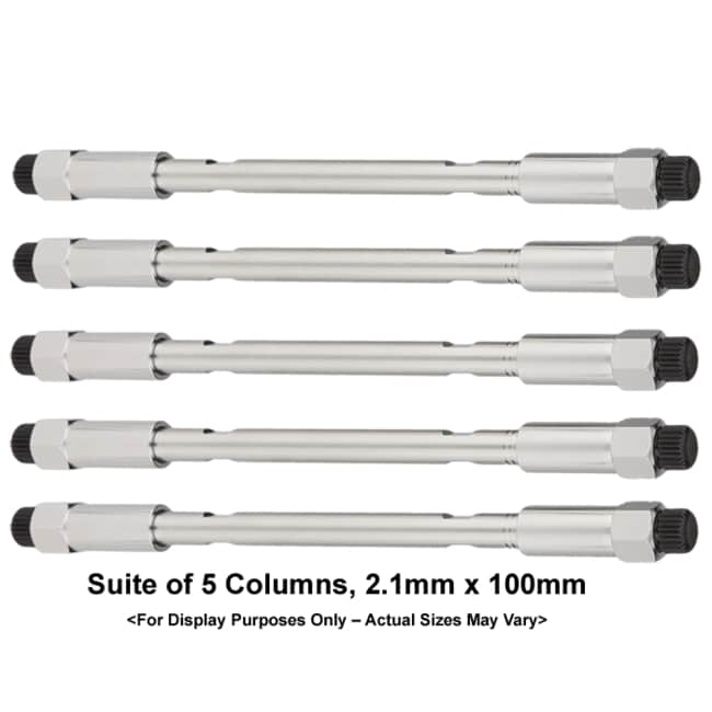 This Kit, 2102 is an economical way to purchase 5 Cogent HPLC Columns that are often used with LCMS. Each Column has a 2.1mm Internal Diameter and is 100mm Long, packed with 2.2um particles, 120A pore size and are manufactured with Cogent TYPE-C™ Silica Hydride. This kit includes Cogent Diamond Hydride™, Cogent Bidentate C18™, Cogent Bidentate C8™, Cogent Silica-C™, Cogent UDC-Cholesterol™.