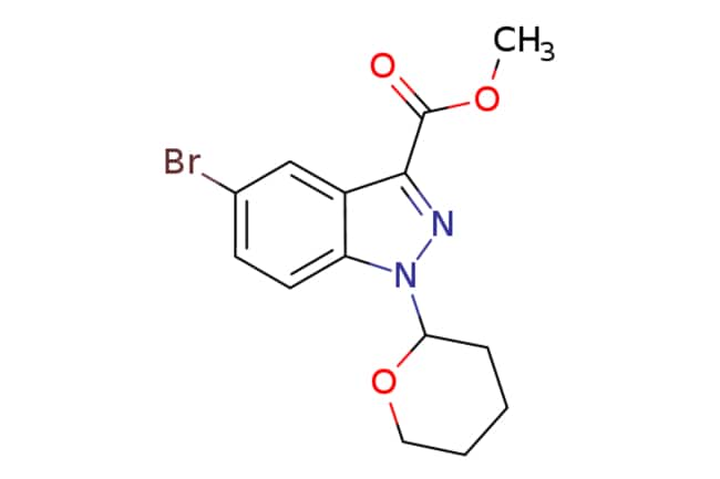 eMolecules Pharmablock / methyl 5-bromo-1-tetrahydropyran-2-yl-indazole-3-carboxylate / 25mg / 699866568 / PBLJD1075 / 0.000 / 850893-01-5 / [null] / 339.189 / C14H15BrN2O3