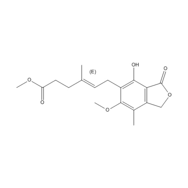 Medchemexpress, HY-113972 10mg Methyl mycophenolate CAS:31858-66-9 Methyl mycophenolate is a methyl ester of mycophenolic acid and is also found in marine-derived fungus Phaeosphaeria spartinae. Purity:>98% Medchemexpress has over 10000 novel life-science reagents, reference compounds, APIs and natural compounds for laboratory and scientific use. Other quantity can also be offered.