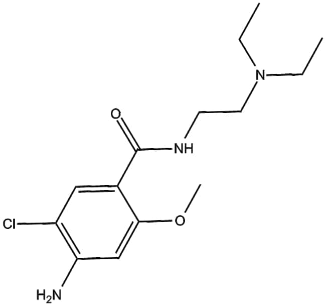 Metoclopramide (CAS 364-62-5) is a small molecule that primarily acts as an antagonist at dopamine D2 receptors and also exhibits mixed activity as a 5-HT3 receptor antagonist and 5-HT4 receptor agonist Through inhibition of D2 dopaminergic signaling it enhances gastrointestinal motility and exerts antiemetic effects Metoclopramide has been extensively investigated for applications in managing gastrointestinal disorders such as gastroparesis and gastroesophageal reflux disease as well as for alleviating nausea and vomiting including in pregnant women Research supports the safety profile of this compound for fetal outcomes when administered during pregnancy reinforcing its utility in reproductive and gastrointestinal pharmacology studies