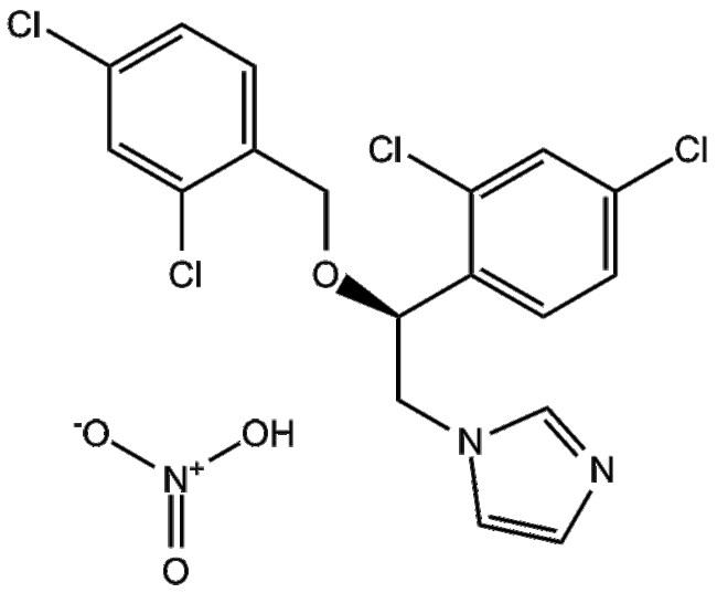 Miconazole Nitrate (CAS 22832-87-7) is a small-molecule inhibitor targeting lanosterol 14-alpha-demethylase It is designed to inhibit ergosterol biosynthesis thereby disrupting fungal cell membrane integrity and function Miconazole Nitrate exerts its biological activity primarily through inhibition of the enzyme lanosterol 14-alpha-demethylase In in vitro studies Miconazole Nitrate demonstrates antifungal inhibitory activity with IC50 values ranging from approximately 0 1 to 10 M depending on specific fungal species and assay conditions Based on these pharmacological properties Miconazole Nitrate holds research potential in evaluating susceptibility profiles and resistance phenotypes of fungal and bacterial pathogens exploring pathogen-host interactions antimicrobial mechanisms of action and fungal metabolic pathways