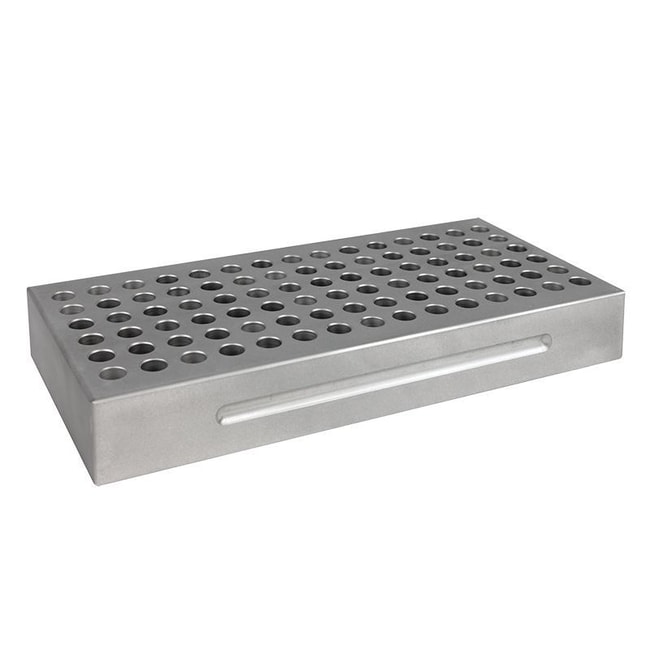 Micro Centrifuge Cool Block, 90 Well. Large 90 well metal chamber for 1.5-2 mL centrifuge tubes. This chamber is made of solid aluminum and the wells are made for snug fit for the tubes. Place on ice to chill large number of tubes. The metal chamber provides a very stable platform in an ice bucket or can be put on hot plate to heat large number of sample tubes.