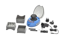 - Supplied with 6 place 1.5/2.0 mL tube rotor, 16 place 0.2 mL tube rotor, (singles, or 2 x 8 strip), 6 tube adapters 0.2 mL, 6 tube adapters 0.5 mL, 4 o-rings, storage case, tube rack, and handy storage box to hold accessories when not in use.
