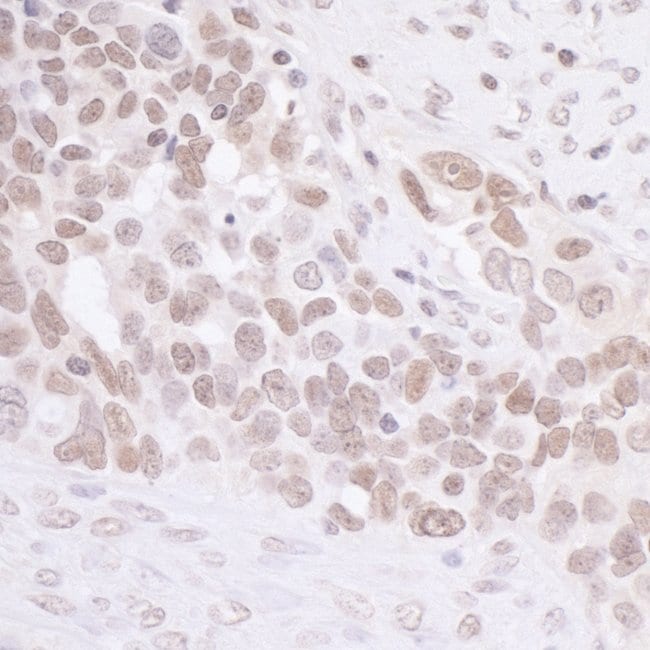 The recommended shelf life for this product is 1 year from date of receipt. Application Note: For IHC, epitope retrieval with citrate buffer pH 6.0 is recommended for FFPE tissue sections. Based on 100% sequence identity, this antibody is predicted to react with Orangutan