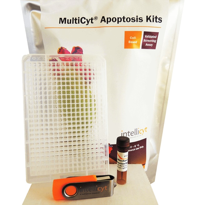 No wash protocol – just add and read for fast easily automated workflow.Multiplex with Qbeads PlexScreen kits for richer content.PrincipleMitochondrial membrane potential is determined by sequestration of a small fluorescent molecule inside the lumen of intact mitochondria with an active membrane potential. Upon mitochondrial depolarization the dye leaks into the cytoplasm and the cell exhibits a decrease in fluorescence.