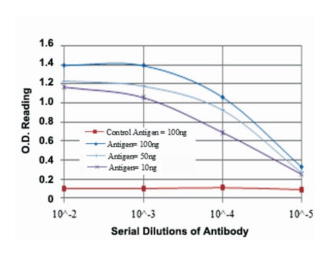 | ELISA (1:10000) Western Blot (1:500-1:2000) Immunohistochemistry (1:200-1:1000) Immunofluorescence (1:200-1:1000) The optimal working dilution should be determined by the end user. | |
