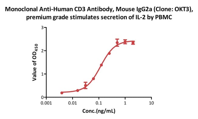 ACROBiosystems Monoclonal Anti-Human CD3 Antibody, Mouse IgG2a (Clone: OKT3) (CDE-M120a) is recombinantly produced from human 293 cells (HEK293).