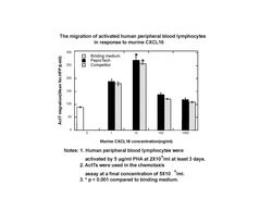 CXCL16 is a member of the CXC chemokine family and signals through the CXCR6 receptor. CXCL16 may play a role in attracting lymphocyte subsets during inflammation and may facilitate certain immune responses. The chemokine domain of CXCL16 contains six cysteine residues, including the four highly conserved cysteine residues characteristic of CXC chemokines. The CXCL16 gene codes for a 273 amino acid polypeptide, which includes a 29 amino acid cytoplasmic domain and transmembrane sequence containing approximately 20 amino acids. The extracellular portion of CXCL16 contains a chemokines domain and an extended C-terminal mucin-like stalk sequence. The extracellular domain contains 89 amino acid residues (86 a.a. residues for the murine homolog).