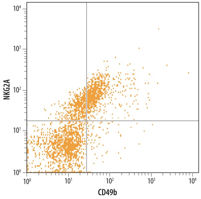 Stains mouse NKG2A/CD159a transfectants and not irrelevant transfectants in flow cytometry. | |