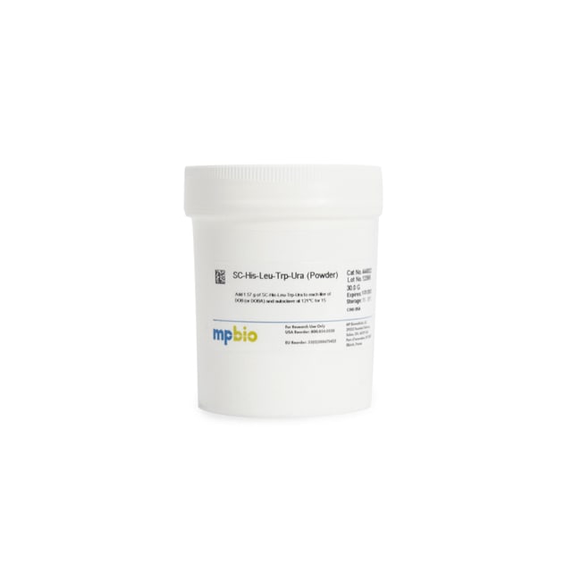 - Add 1.57g of SC-His-Leu-Trp-Ura/L of DOB or DOBA and autoclave at 121°C for 15 minutes for complete synthetic defined medium for S.cerevisiae