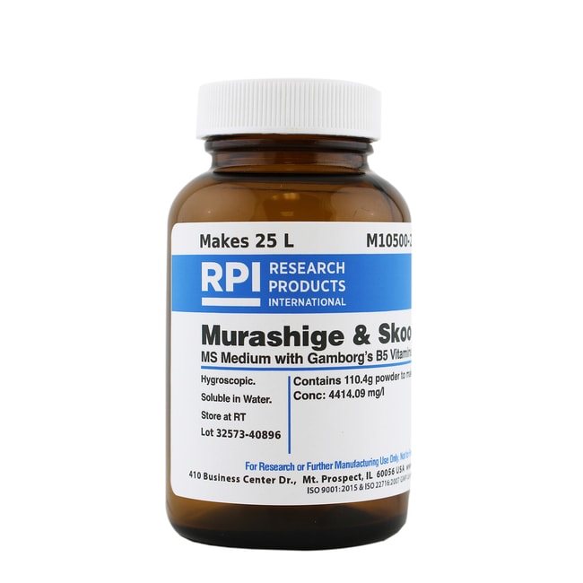 Research Products International Corp Murashige & Skoog MS Medium with Gamborg's B5 Vitamins, 110 Grams of Powder, Makes 25 Liters of Solution
