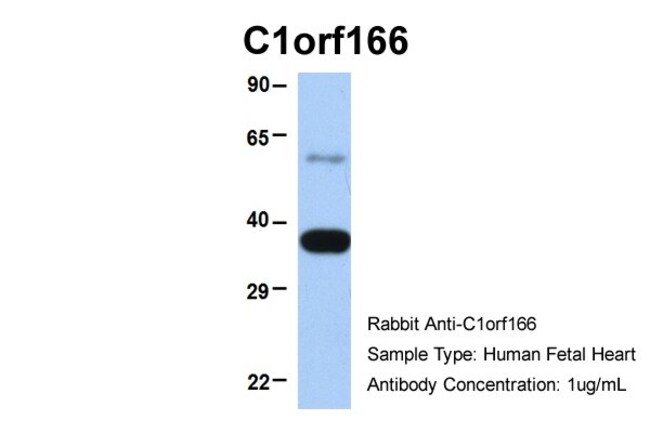 | Synthetic peptide directed towards the middle region of human C1orf166. | |