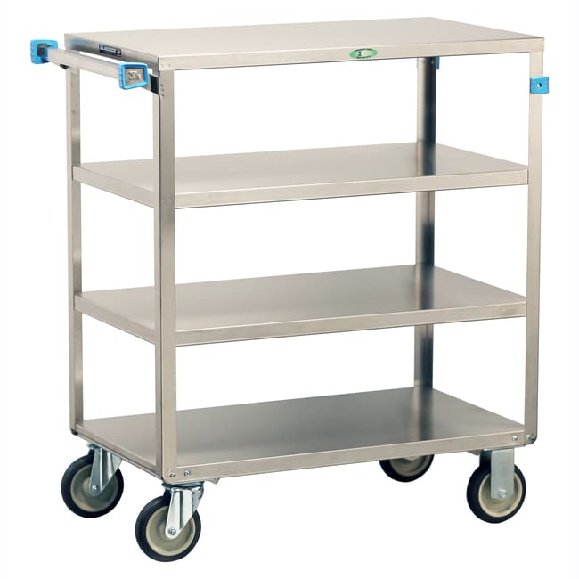 Multi-Shelf Carts by Lakeside Manufacturing have multiple shelves that keep instrument trays and medical supplies organized in a compact footprint. The Lakeside 351 Multi-Shelf Cart with (3) shelves measuring 18" x 31" has a weight capacity of 500-Lb. This cart's compact size allows for easy maneuvering, while all of its shelf edges are down for easy loading and unloading from all sides. This Lakeside cart's all-welded angle leg construction makes for a stronger structure and easier-to-clean surface. Its stainless steel construction is easy to clean and sanitize. This medical utility cart's no-mark cushion-tread casters absorb impact for quieter operation. This cart's bumpers on its legs and handles protect walls and furniture. Equipped with 2 fixed and 2 swivel 5” casters to guide cart in a straight line, while making turns easier. Largest selection on the market. Superior lead times. Made in the USA.