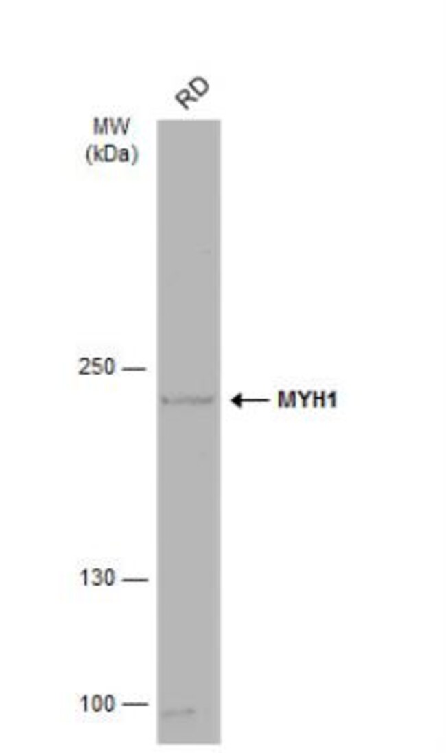 Myosin Heavy Chain 1 Polyclonal specifically detects Myosin Heavy Chain 1 in Human, Mouse samples. It is validated for Western Blot.Specifications