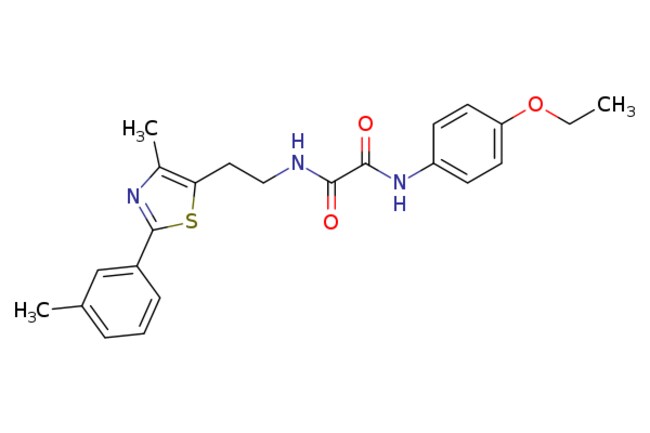 N~1~-(4-ethoxyphenyl)-N~2~-{2-[4-methyl-2-(3-methylphenyl)-1,3-thiazol-5-yl]ethyl}ethanediamide | ChemDiv SC | | | 423.530 | C23H25N3O3S | | CCOc1ccc(NC(=O)C(=O)NCCc2sc(nc2C)-c2cccc(C)c2)cc1 | 2mg | 827920787